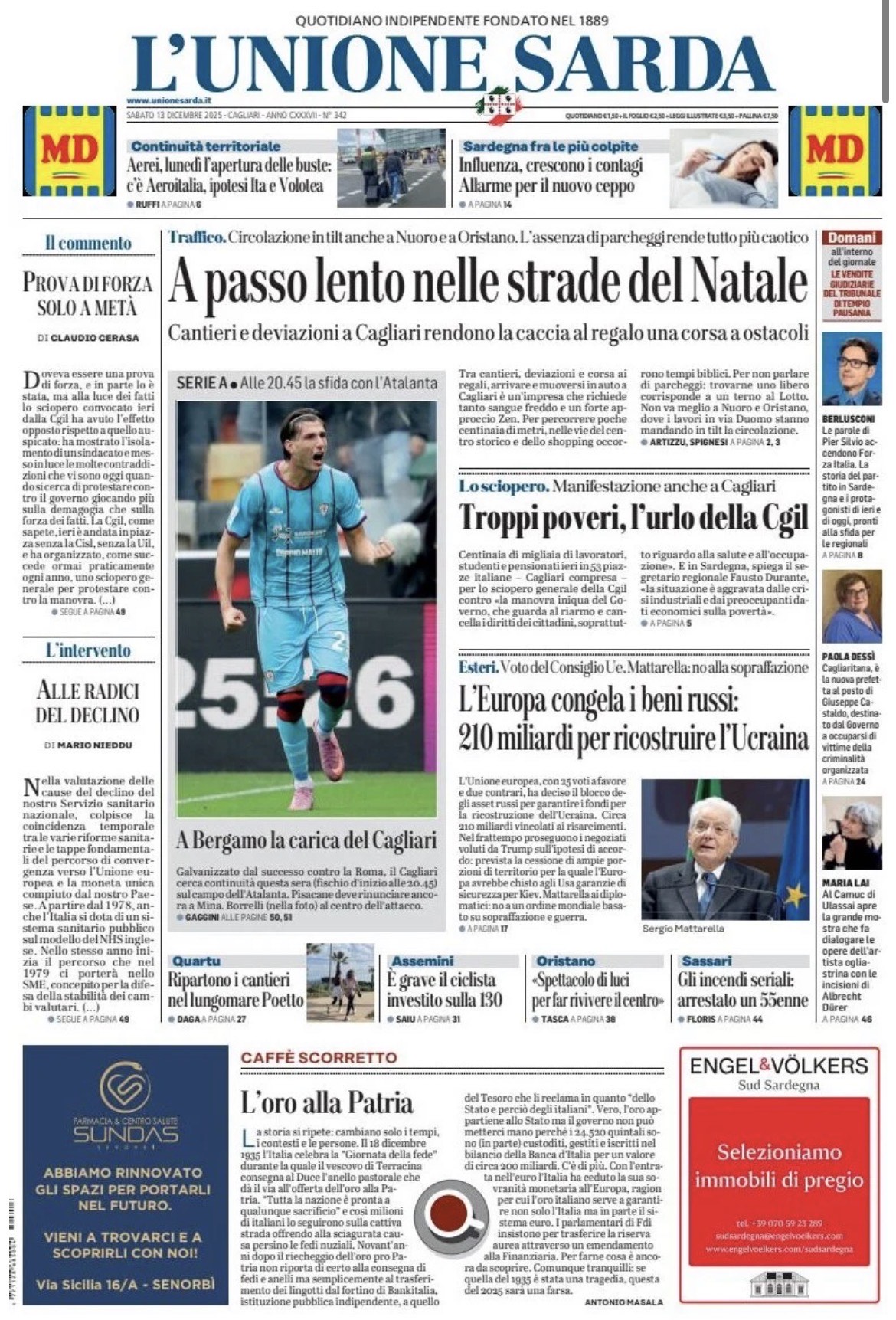 "A Bergamo la carica del Cagliari". Così titola stamattina in prima pagina L'Unione Sarda. Alle 20:45 la sfida con l'Atalanta. Nella prima sportiva: "Il Cagliari punta a un'altra impresa contro l'Atalanta". Trasferta insidiosa dopo la Roma. Verso la conferma gli undici di domenica.