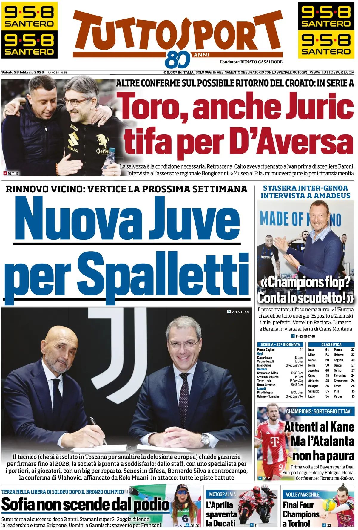 "«Champions flop? Conta lo scudetto!»". Stasera Inter-Genoa intervista a Amadeus. Il presentatore, tifoso nerazzurro: «L’Europa ci avrebbe tolto energie. Esposito e Zielinski i miei preferiti. Vorrei un Rabiot». Dimarco e Barella in visita ai feriti di Crans Montana.